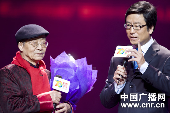 《聲震長空》晚會上,瞿弦和、張筠英朗誦詩歌。