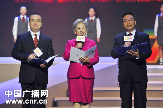 《聲震長空》晚會上,蒙藏維哈朝語播音員演唱歌曲。