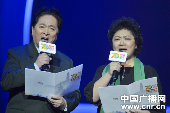 《聲震長空》晚會上,瞿弦和、張筠英朗誦詩歌。