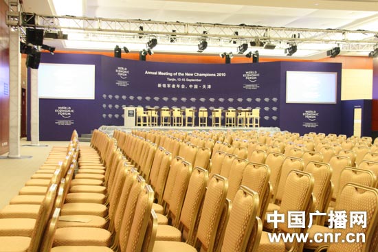 15日,2010夏季達沃斯論壇的閉幕式將在這間名為“達沃斯”的會議廳舉行。(中廣網(wǎng)記者朱虹 攝)