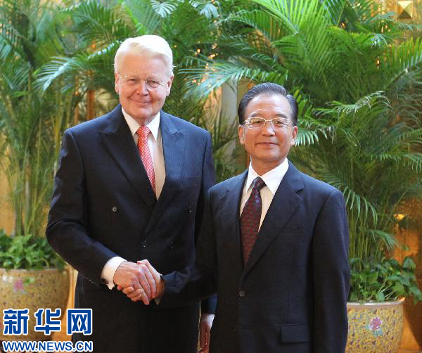 9月13日,國務(wù)院總理溫家寶在天津會見來華出席夏季達(dá)沃斯論壇的冰島總統(tǒng)格里姆松。新華社記者 丁林 攝