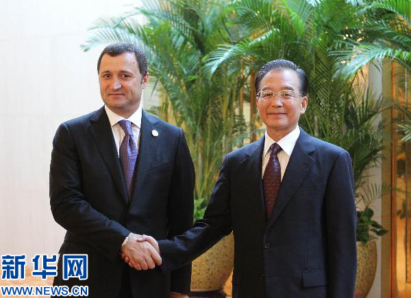 9月13日,國務(wù)院總理溫家寶在天津會見來華出席夏季達(dá)沃斯論壇的摩爾多瓦總理菲拉特。 新華社記者 丁林 攝
