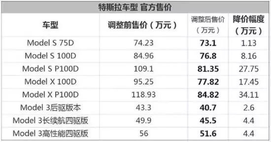 2019年3月1日,特斯拉的“大促銷”則有些“不作不死”的感覺。該次價(jià)格調(diào)整中,Model 3降價(jià)區(qū)間為2.6萬(wàn)元-4.4萬(wàn)元、Model S降價(jià)區(qū)間為1.13萬(wàn)元-27.75萬(wàn)元、Model X降價(jià)區(qū)間為17.45萬(wàn)元-34.11萬(wàn)元——這也是特斯拉系列產(chǎn)品入華以來(lái)降價(jià)規(guī)模和幅度最大的一次。