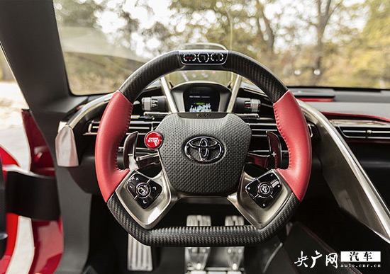 從現(xiàn)場的照片上看,全新豐田FT-1的設(shè)計更加具有攻擊性,是一款動力十足的運(yùn)動跑車。同時,全新豐田FT-1也預(yù)示著未來豐田汽車的設(shè)計理念。雖然造型略顯浮夸,但是在空氣動力學(xué)套件上還是能看出,豐田是下了一番功夫的。