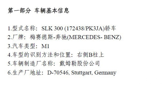 新款奔馳SLK環保目錄信息 搭2.0T+9AT
