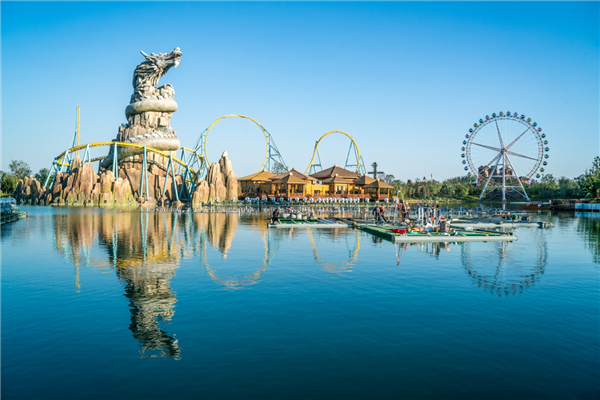 2016年9月,合肥萬達樂園開業。令人眼花繚亂的過山車軌道和摩天輪延伸至天際線,環湖而建的酒店群則在不遠處靜靜融入18萬平方米的景觀湖,其逐漸成為改變區域旅游業的“現象級變量”。