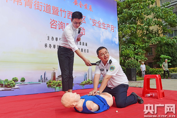 活動(dòng)現(xiàn)場(chǎng),社區(qū)工作人員向居民群眾發(fā)放安全宣傳資料、設(shè)置微信墻二維碼,提醒居民注意用火、用氣、用電、用油安全。為了增強(qiáng)居民的自救意識(shí)和能力,社區(qū)還專門邀請(qǐng)急救醫(yī)生現(xiàn)場(chǎng)為居民講解、演示常見的急救方法。