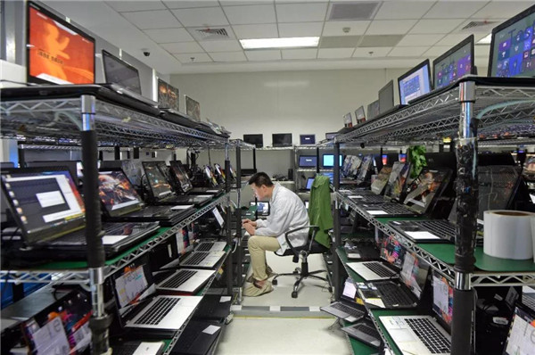在聯寶(合肥)電子科技有限公司,工作人員正在對筆記本電腦進行滿負荷壓力測試。記者張大崗攝