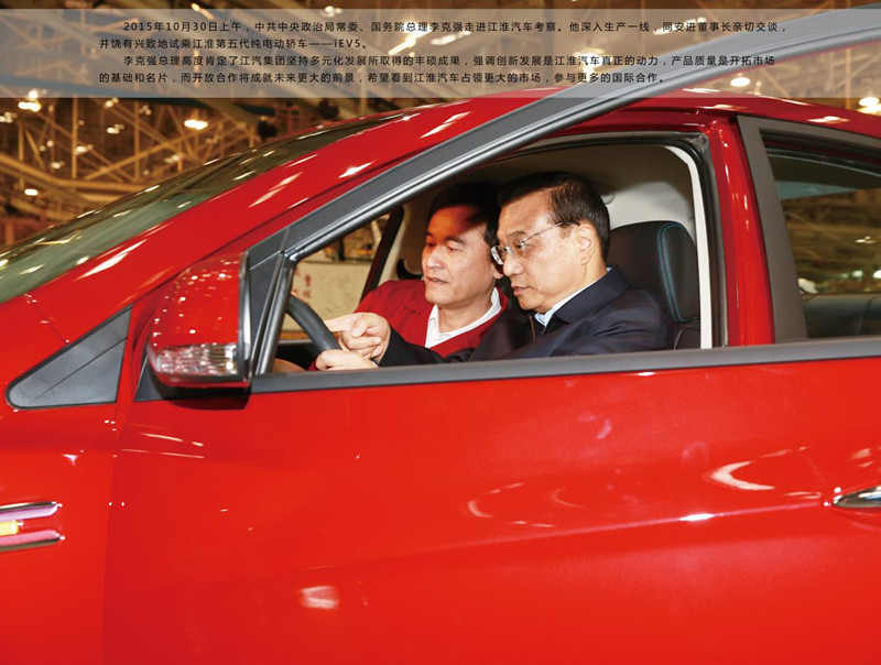2015年10月30日,陪同德國總理默克爾在合肥訪問的國務院總理李克強,走進江淮汽車集團考察。李克強強調,希望看到江淮汽車占領更大的市場,參與更多的國際合作。
