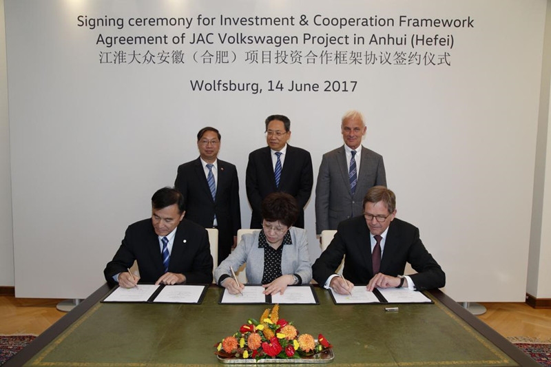 2017年6月1日,在李克強總理和德國總理默克爾的共同見證下,江淮汽車集團股份有限公司與大眾汽車集團在德國柏林正式簽署合資企業協議,雙方共同成立一家股比各占50%的合資企業,進行新能源汽車的研發、生產和銷售。