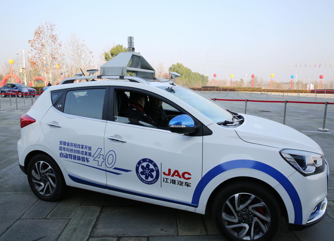 亮相改革開放40周年安徽科技創新成果展的江淮無人駕駛汽車