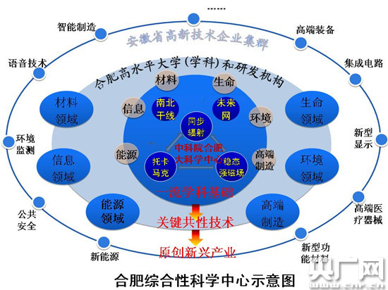 2016年12月23日,國家發改委、科技部、財政部等9部委聯合發布《國家重大科技基礎設施十三五規劃》,規劃提出要在北京、上海、合肥等設施相對集聚的區域,建設具有國際影響力的綜合性國家科學中心;優先布局10個建設項目,其中聚變堆主機關鍵系統綜合研究設施、空間環境地基監測網(包含天地一體化信息網絡合肥中心)位列其中。