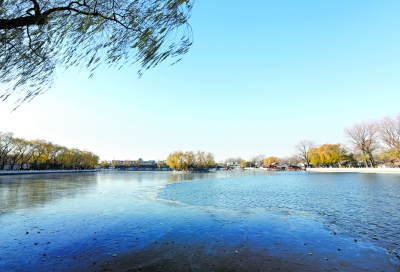 什剎海前海部分水面已結了一層薄冰。攝影 于志強