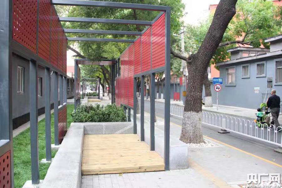 “中國(guó)紅”的穿孔板廊架形成亮麗風(fēng)景線(央廣網(wǎng)發(fā) 通訊員劉昕 攝)