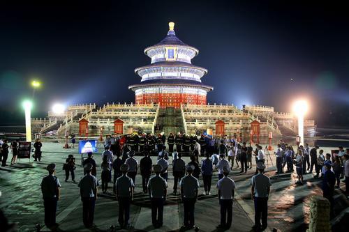 2019年9月6日晚,消防隊員從祈年殿四個方向架設移動水炮、消防機器人和云梯車對祈年殿起火部位進行撲救。當晚,北京東城消防支隊聯合天壇公園舉辦了文物古建應急救援綜合演練。此次演練,包括人員疏散、搶救文物、滅火救援等突發事件的處置,歷時約40分鐘。