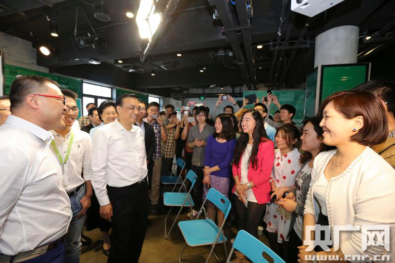 央廣網北京5月7日消息(記者馮悅)李克強7日在中關村創業大街3W咖啡考察時,走進拉勾網的路演現場。公司負責人介紹,這家僅有180名員工的招聘平臺一年多就向互聯網企業輸送了150萬人才。總理對他們帶動大量就業大加贊賞。他鼓勵創業者,今天你們的路演,就是明天成功的預演。