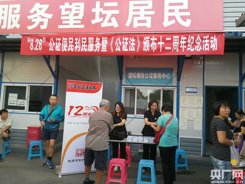 北京市東方公證處在東城區(qū)疏解整治促提升專項(xiàng)工作中,發(fā)揮了重要作用,依法公證,耐心服務(wù),為中心工作分憂,為棚改群眾解難。8月28日前后,他們在疏解整治促提升棚改工作現(xiàn)場——望壇棚改總指揮部公證室為群眾提供免費(fèi)公證法律咨詢。