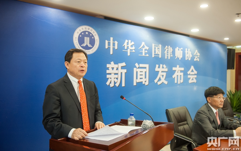 全國律協副會長、新聞發言人、全國律師行業黨委委員蔣敏主持新聞發布會