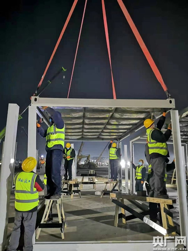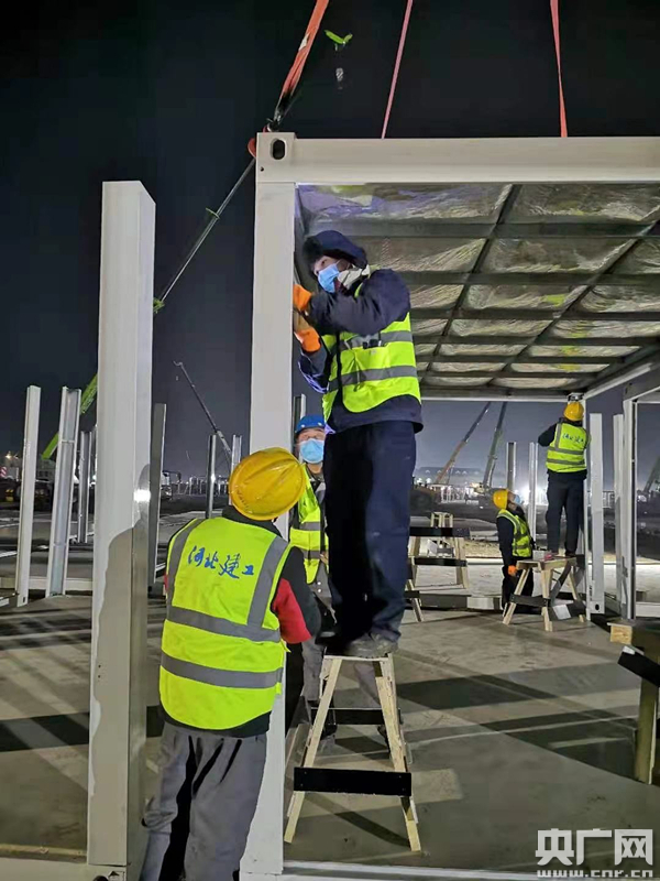 目前,施工總人數已經超過1000人,多家大型建筑公司的施工隊在現場24小時不間斷施工。施工人員張朋告訴記者,石家莊要求全員居家隔離,他是13日接到公司的緊急通知后,和工友們迅速集結到了施工現場。