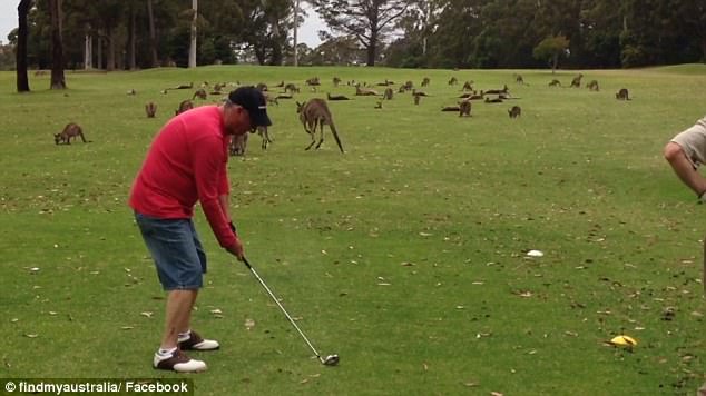 300多只袋鼠在球場(chǎng)里悠閑地跳來跳去,在客人揮桿時(shí)還會(huì)停下動(dòng)作駐足觀看,在視頻中觀眾可以看到成群的袋鼠走著、躺著,有些打球的客人還樂于有袋鼠相伴。讓這個(gè)平和的休閑運(yùn)動(dòng)頓時(shí)增加了幾分趣味。