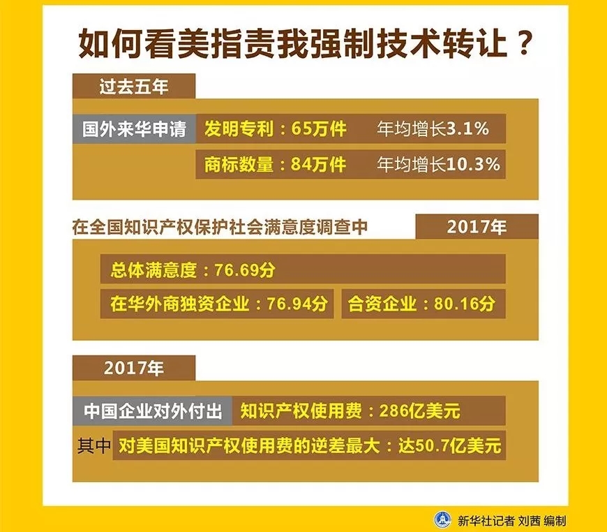 針對美國多次指責中國政府強制技術轉讓,商務部副部長兼國際貿易談判副代表王受文表明,在我國現行法律法規、政策文件中,沒有強迫外國企業把技術轉讓給中國企業的要求。為了防止政府機關對外企施壓,要求其轉讓技術給中方企業,今年國務院還專門發文要求各級政府不得利用行政手段強制技術轉讓。