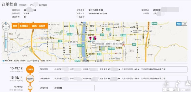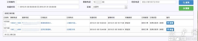 截圖顯示該手機號注冊后當天創建兩個訂單,乘客上車后執法人員同時上車扣押車輛