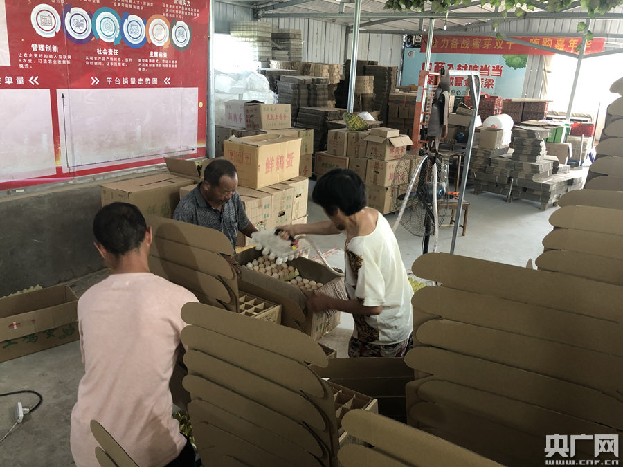 臨泉土雞蛋的包裝過程(總臺央廣記者張浩森 李行健 攝)