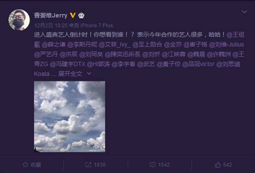 不料隨后@曹晏維Jerry再次發(fā)微博表示:“三年間原來(lái)合作了這么多藝人,好希望大家都能來(lái)!”又附上一份長(zhǎng)長(zhǎng)的明星大咖名單。網(wǎng)友只能表示:“走過(guò)最深的路,就是你的套路”。看來(lái)2016酷狗直播繁星音樂(lè)盛典的明星出席名單仍然深埋在一片迷霧中,不過(guò)無(wú)論如何,@曹晏維Jerry都為大家劃定大致范圍了,至于究竟有誰(shuí)?粉絲們還是乖乖等官方消息吧~