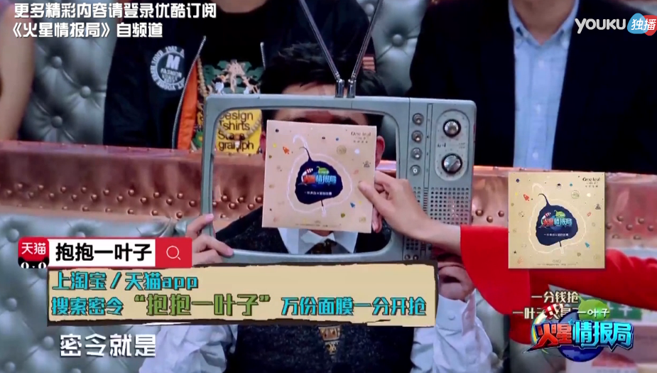 作為《火星情報局》的首席冠名,一葉子與節(jié)目內(nèi)容無縫連接,從硬廣口播到將廣告融入到節(jié)目中。一葉子面膜借助《火星情報局》的活力、趣味和個性優(yōu)勢,在消費(fèi)者中快速傳遞其年輕、新鮮的產(chǎn)品理念。其在觀眾面前以各種姿勢刷足了存在感,好玩又多彩的廣告植入新技能讓觀眾們過目不忘。