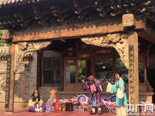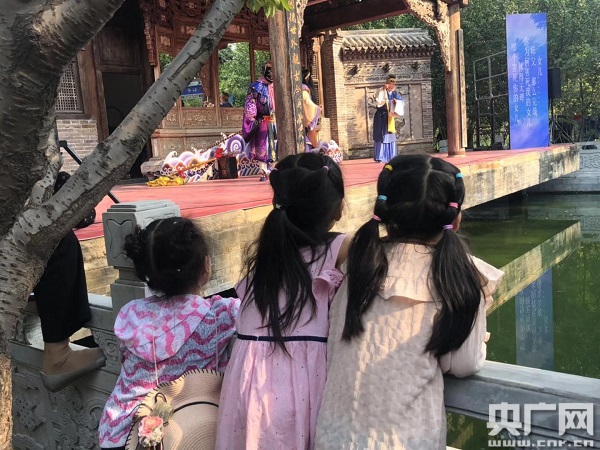 “很久沒有見過這種場景了,在園子里表演的這種形式,讓男女老少聚集在一起聽戲,雖然人山人海,但是很有生活氣息。”來自河南的游客孫秀琴對記者表示,在天然的舞臺和自然的樣態中,近距離欣賞到經典的地方戲,“仿佛回到了小時候。”