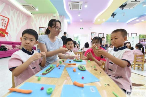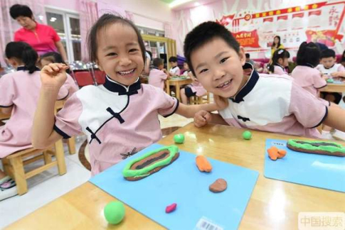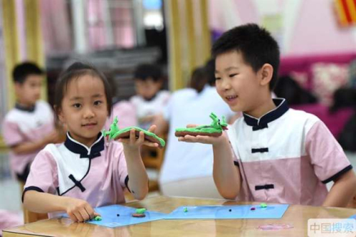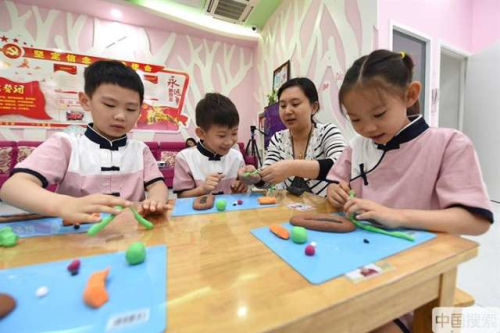 2019年6月4日,端午節將至,北京東城區崇文第三幼兒園少年兒童自己挑選材料,自己設計龍頭,親手感觸面人,并操作經手工捏,搓,揉,掀等面塑工序制作端午龍舟,在實踐中塑造“賽龍舟”的熱鬧景象,體會傳統節日意義。