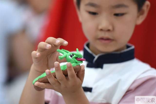 2019年6月4日,北京龍潭街道“小手畫龍舟傳承大夢想”端午節主題活動在東城區崇文第三幼兒園舉行。現場邀請非遺面塑專業教師向少年兒童講授非遺面塑專業知識及操作技法,為了讓孩子更生動的了解端午,老師準備了非遺面塑的材料,孩子們自己挑選材料,自己設計龍頭,親手感觸面人,并操作經手工捏,搓,揉,掀等面塑工序制作端午龍舟,在實踐中塑造“賽龍舟”的熱鬧景象。