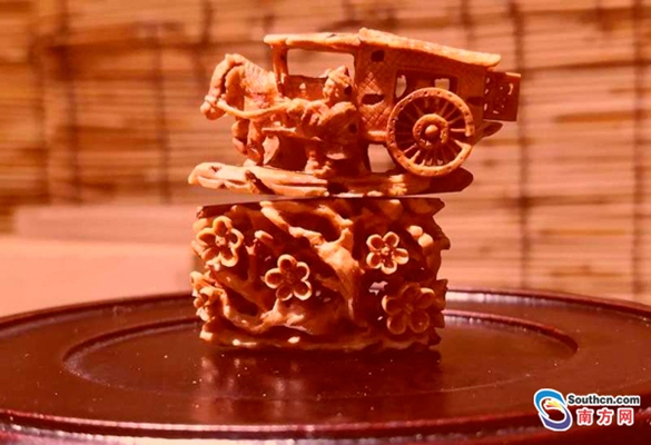 據南方網報道,方寸之間盡顯事物百態,細微之處揮灑博大精神。3月18日,山東濰坊核雕藝術全國(深圳站)巡展在深圳市寶安區群眾文化藝術館拉開帷幕,來自世界風箏都濰坊的50位核雕藝術大師的150件代表作品與觀眾見面,傳世百年、技藝精湛的濰坊核雕藝術令觀眾大飽眼福、贊嘆不已。