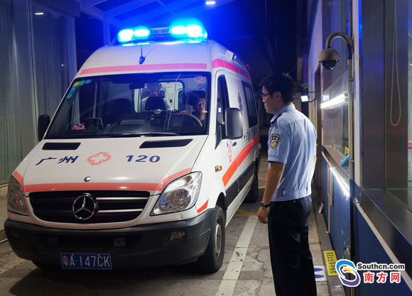 皇崗邊檢民警及時為載有患病香港老人的急救車引導至“生命健康通道”辦理出境手續。黃俊生攝