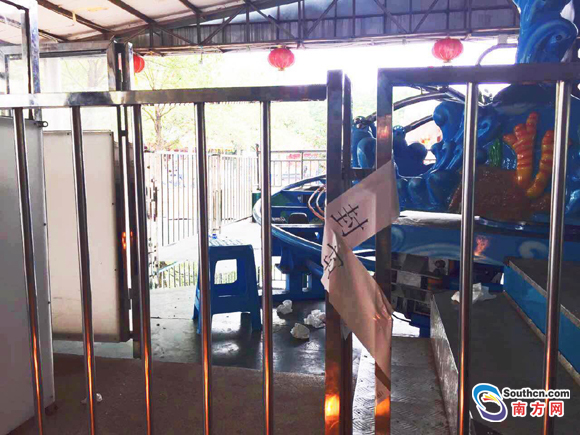 4月20日上午,記者來到了水濂山樂民游藝園,入口處立著“暫停營業”公告,顯示“正在檢修,嚴禁操作”。游藝園的伸縮門張貼有封條。