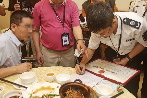 正當大家都對抽查結果感到滿意時。突然間,前方一個叼著一支香煙的黑色背影引起了執法人員的注意。執法人員立馬上前制止并進行懲戒教育。記者發現,在這位先生的餐桌上擺放著香煙和打火機。面對執法人員到來,這位先生懵住了,他連忙說,"是第一次抽。"一同吃飯的朋友也幫忙解釋道,這位先生剛到深圳,不知道深圳有禁煙的規定,希望執法人員能網開一面。記者問他們,吸煙的時候,餐館的經營人員有沒有過來進行勸阻,他們表示,“剛坐下,剛把煙拿出來,就被執法人員發現,服務員還來不及勸阻。"經過執法人員耐心地勸導教育,吸煙者最終"笑"著虛心接受教育以及50元處罰。