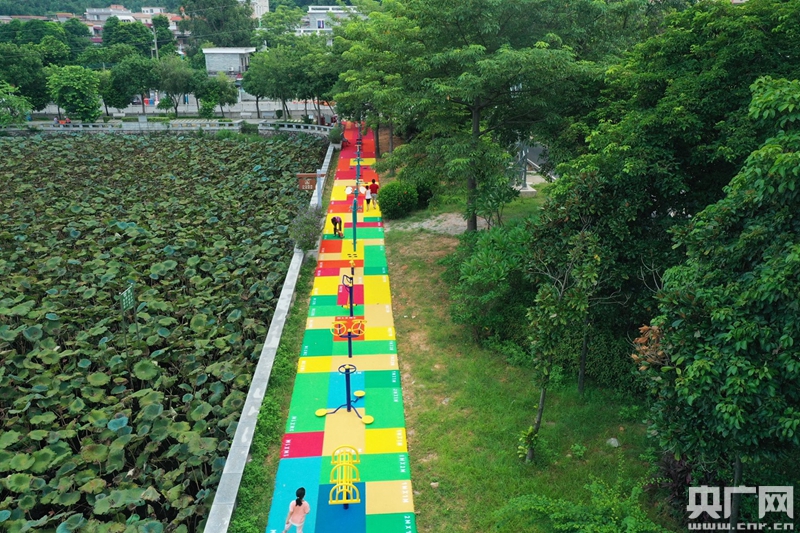 2000多條單車輪胎變身濱河步道。(央廣網發)