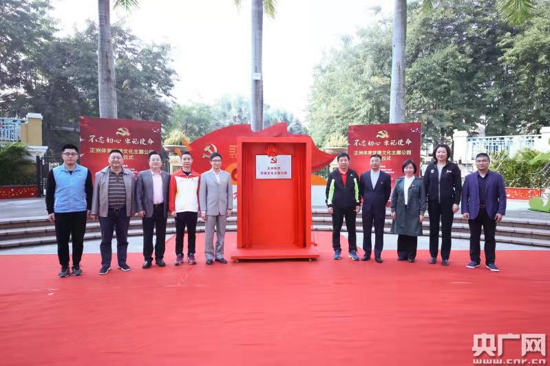 央廣網(wǎng)東莞12月27日消息(記者周羽 通訊員王驍) 12月27日,廣東東莞南城首個社區(qū)黨建公園——正洲體育黨建文化主題公園揭牌。該公園占地約兩千平方米,分精神堡壘、主題雕塑、運動雕塑、中國精神、光輝歷程、核心價值觀和微馬黨建7大板塊,集思想教育、黨史知識、休閑運動、宣傳展示于一體,營造了“處處是課堂,時時受教育”的黨建濃厚氛圍。