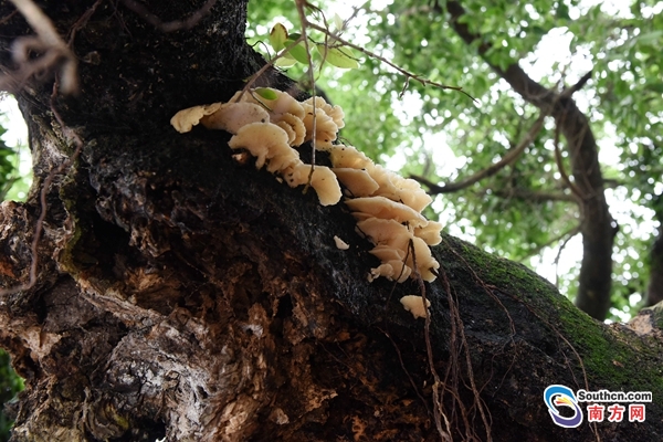 在該村后山金波嶺有一棵樹干十分粗壯的沉香樹,樹底下有不銹鋼圍欄圍著。為何要把樹圍起來?據村民介紹,這棵沉香樹長得粗壯,而且有多年歷史,前些年被一些不法分子盯上,偷砍樹采沉香,幸好村民發現,后來大家商量決定為該樹設立護欄。現在走近一看,沉香樹干還有被刀斧砍傷的地方。