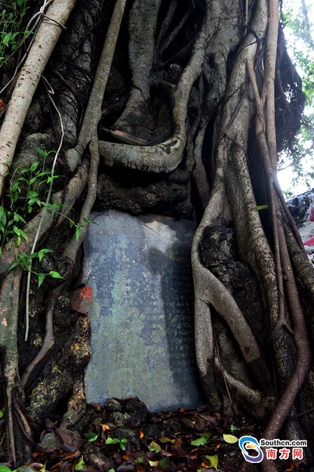 南方網訊 前往惠州惠東縣平海圩鎮,經過佛園村村口時,會看到兩棵枝葉茂密的大榕樹。更為稀奇的是,其中一棵有著500年樹齡的大榕樹根部“長”著一塊古石碑,究竟是怎么回事?石碑上寫著啥?