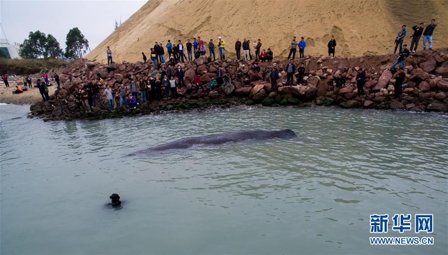 據新華網報道,救助誤入廣東大亞灣海域抹香鯨的行動繼續。據廣東省惠州市海洋與漁業局通報,13日晚抹香鯨游入惠州港油庫碼頭附近海域,專家根據現場情況反饋:鯨魚身體狀況不佳。14日下午,抹香鯨呼吸次數減少,游動速度減慢甚至停滯不前,情況不容樂觀。隨著潮水退去,可以判定鯨魚已經擱淺。