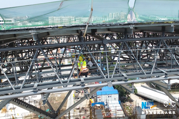 今年30歲的班組質(zhì)檢員楊力俊平時(shí)工作的主要內(nèi)容是安排工人安裝構(gòu)件、材料,并檢查安裝是否準(zhǔn)確到位。曾經(jīng)他也恐高,但為了工作克服了這一困難。在楊力俊看來,做工程,最重要的是要負(fù)責(zé)任。新華網(wǎng)發(fā)