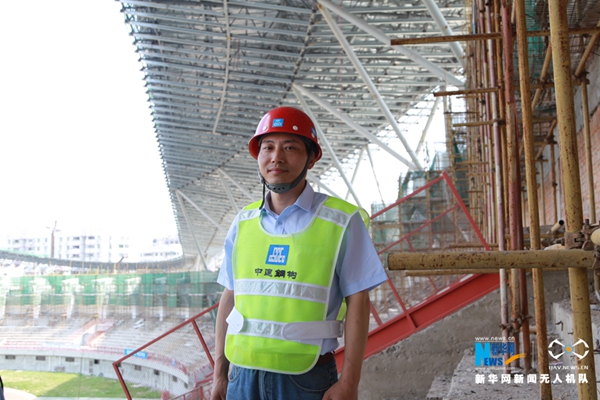 中建鋼構(gòu)有限公司肇慶體育中心升級(jí)改造工程項(xiàng)目項(xiàng)目經(jīng)理薛飛飛(左5)是中建鋼構(gòu)最早一批80后項(xiàng)目經(jīng)理。他介紹。項(xiàng)目升級(jí)改造工程自2016年3月開工,預(yù)計(jì)將于2018年初提前完工。體育中心升級(jí)改造后,將成為集綠色節(jié)能、智能辦公、健身、娛樂、休閑和展示于一體的大型多功能綜合性活動(dòng)場(chǎng)所。新華網(wǎng) 伍嘉煒攝