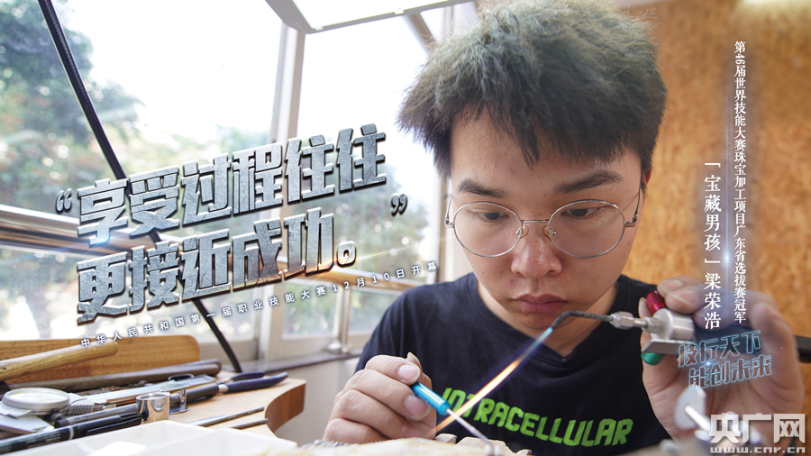 憑著對細節的精雕細琢,關鍵時刻他穩定發揮,在第46屆世界技能大賽廣東省選拔賽上,以0.11分的優勢奪得珠寶加工項目的冠軍,拿到第一屆全國技能大賽的“入場券”。