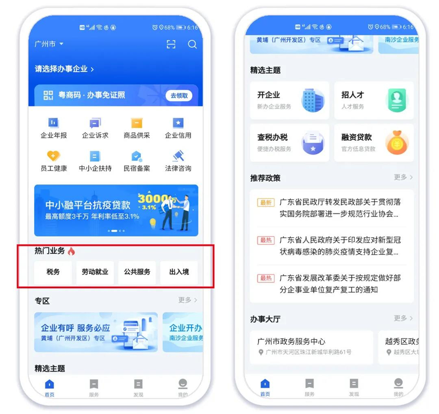 “粵商通”APP操作頁面