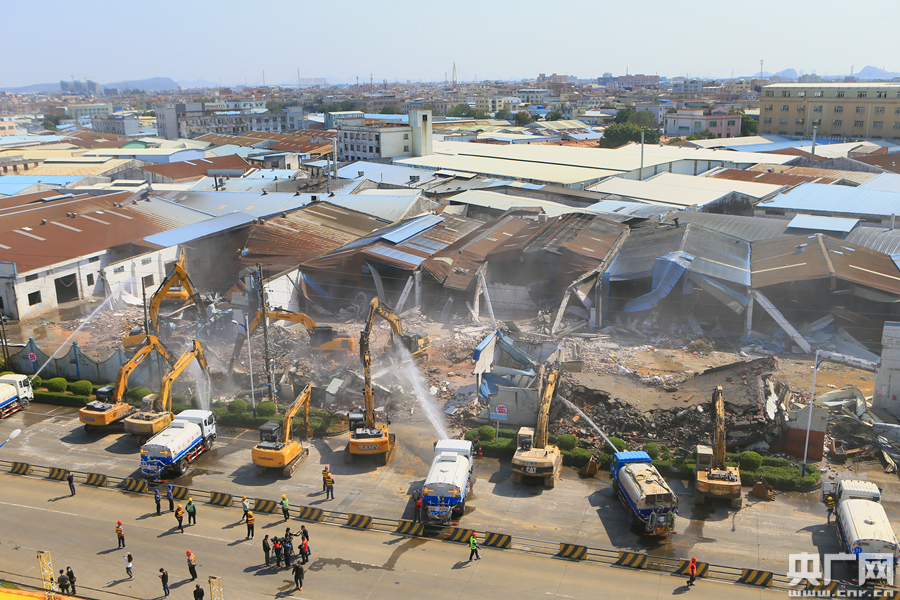 2月18日上午,容桂街道推進(jìn)華口新基圍工業(yè)區(qū)低矮廠(chǎng)房拆除工作。(央廣網(wǎng)發(fā) 通訊員陳炳輝攝)