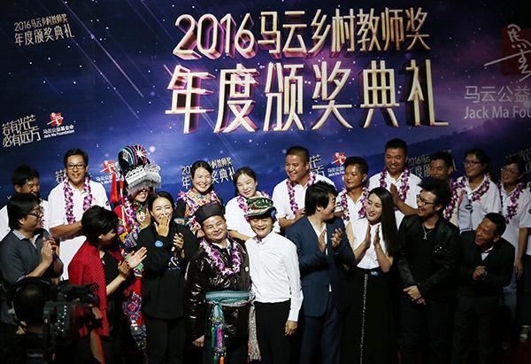 馬云與2016屆“馬云鄉村教師獎”獲獎教師合影