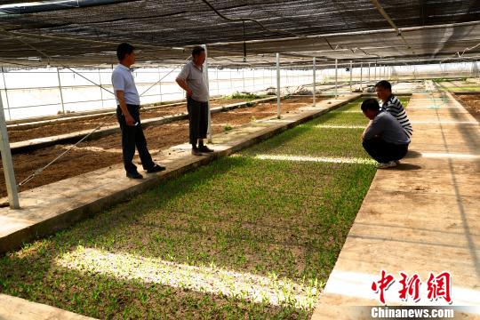 在育苗大棚內,技術人員對煙農進行育苗指導。 邢翀 攝