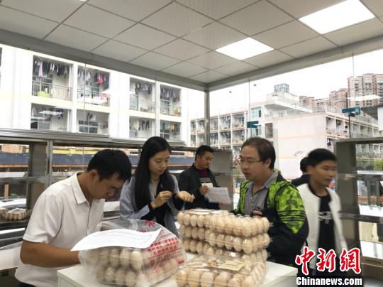 圖為師生正在黔南師院“校農結合”孵化中心領取雞蛋。 冷桂玉 攝