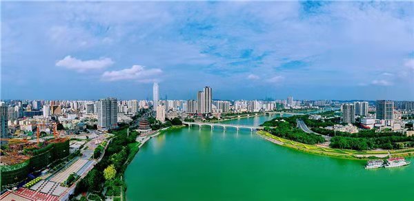 南寧城市風(fēng)光,邕江兩岸綠意盎然,高樓林立。(央廣網(wǎng)發(fā) 黎子琦攝)